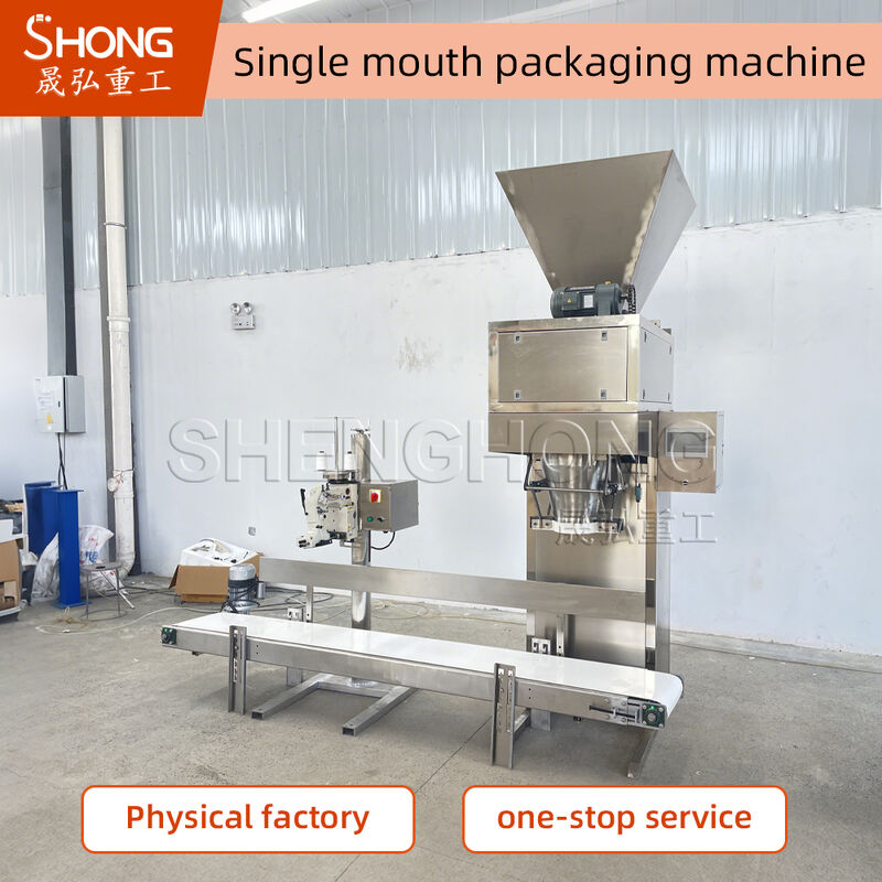 Una macchina confezionatrice comprende principalmente una bilancia quantitativa a computer, uno strumento di controllo della pesatura, un meccanismo di bloccaggio del sacco, un trasportatore e una macchina a fessura. La tramoggia è in acciaio al carbonio con verniciatura anticorrosione; la macchina confezionatrice a contatto con il fertilizzante è in acciaio inossidabile.